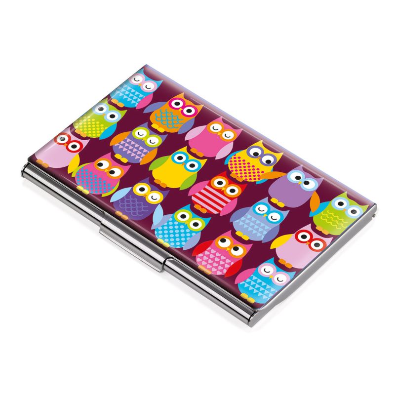 Visitkortsetui med de populära ugglorna på locket. Här har du plats för 4-5 kreditkort eller 11 visitkort. Detta etui är tillverkat i rostfritt stål.. Levereras i presentask. Köp online